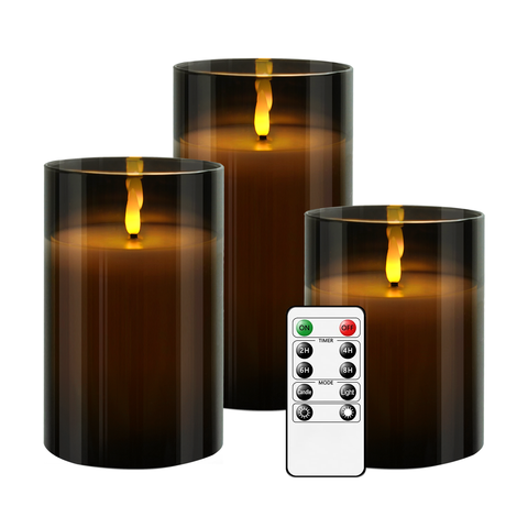 شموع كاكويا رمادية ليد عديمة اللهب على شكل عمود شمع زجاجي حقيقي دافئ لحفلات الزفاف وأعياد الميلاد ديكور منزلي مخصص رمضان في عيد الميلاد